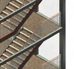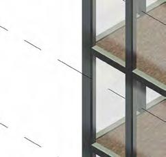 As this is a public common area lobby, and one of two main fire escape routes, all the materials used are fireproof or fire-resistant in compliance with Approv. Doc. B, Vol. 2. The glazing is annealed glass, the steel framework is coated with intumescent paint for delayed fire response, the floor is fire-resistant vinyl. The structural stability of the circulation hub is vital to its design.