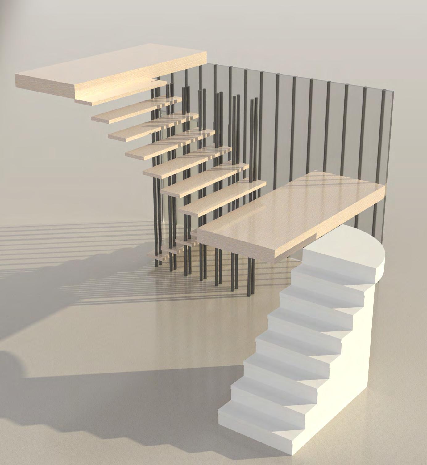 Each step is marked with a little marking strip to differentiate it within the flight and to help with cane detection (see draw. 6 for more info.).