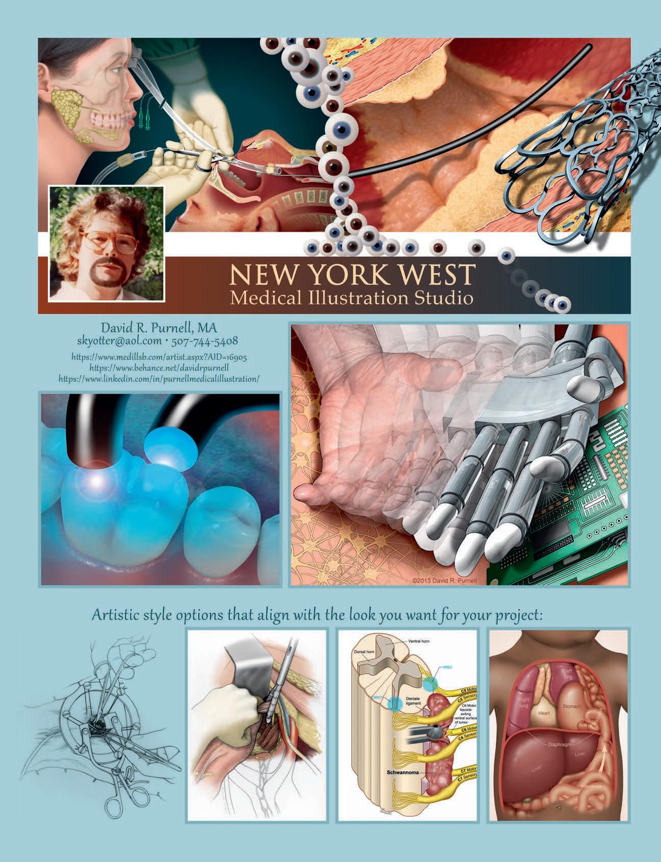 3FX, inc. ..............................................9 A KYU Design .............................10-11, 38-39 Alan Gesek Medical Illustrator ......................72 Amino Creative, LLC ...............................37 Anatomy By Design, Inc. ...........................40 ANATOMYBLUE .................................12-13 Audra Geras Biomedical Art.....................18-19 Austin, Mike .........................................41 AXS Studio ..........................................14 Bajema Studios, LLC ............................42-43 Biomedscapes .....................................44 Bodell, Scott .......................................45 Body Scientific International .......................46 Bolinsky, David ......................................15 Bollinger, Peter .................................48-49 Borman, Molly ..................................50-51 BREAKIRON Animation&Design .....................16 BrysonBiomed.com ................................47 Buck, Todd ......................................52-53 Chovan, Joe .....................................54-55 Clark Medical Illustration ...........................56 Dauenheimer, Marie ............................58-59 Début Art Ltd ...................................60-63 Digital JAB 3D Multimedia Production ..............17 DNA Illustrations ................................64-65 Duran, Mica .....................................66-67 Ganesan, Neramy ...............................68-69 Gentry, Jennifer ....................................57 Gerrity, Peg .....................................70-71 Graham Studios ..............................20-21, 73 Graham, Michele ...................................74 Gralapp, Chris ......................................75 Graves, Thom ......................................76 Harris, Marty ....................................78-79 Harrold, Brian ......................................77 Hayes, Suzanne ....................................80 Heda, Jackie ........................................81 Helix Animation .................................22-23 Hofkin, Bonnie .....................................82 Hromi Biomedical ..................................83 contents