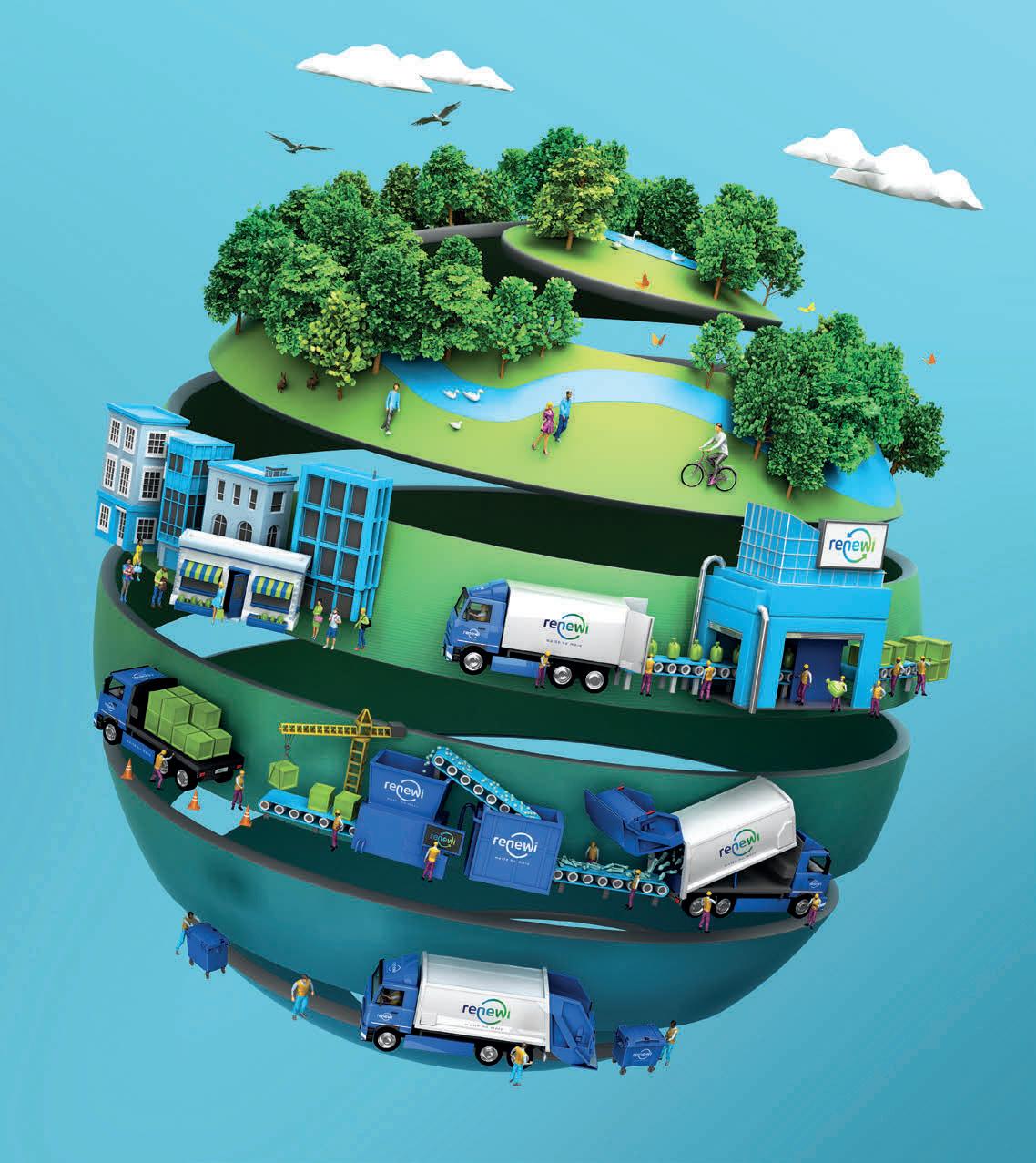 Poster and animation titled 'Giving new life to used materials'. Comm. by Renewi.