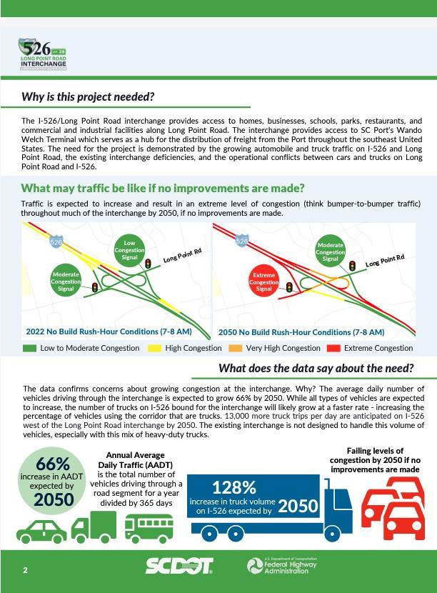The purpose of the proposed project is to improve the operations of the I526/Long Point Road interchange and I-526 mainline and reduce operational conflictsbetweenport-relatedandlocaltraffic.