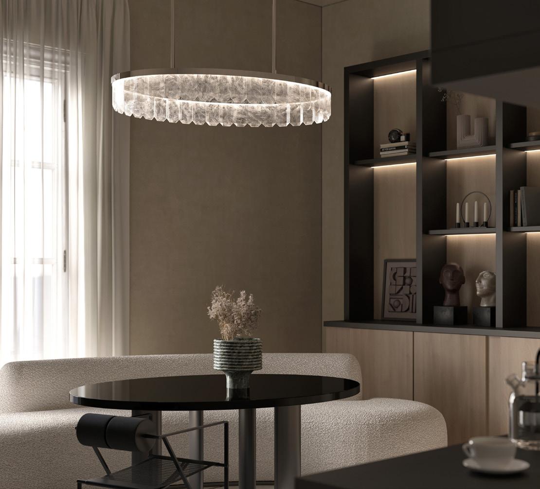 Ce savoir-faire unique, développé dans les ateliers de la Maison près de Versailles, associe exigence technique et sens artistique. Comme un bijou, chaque luminaire joue avec la lumière, les volumes et les matières, métaux précieux, miroirs, surfaces raffinées, pour révéler toute la richesse du cristal et magnifier l’espace architectural dans lequel il s’intègre.