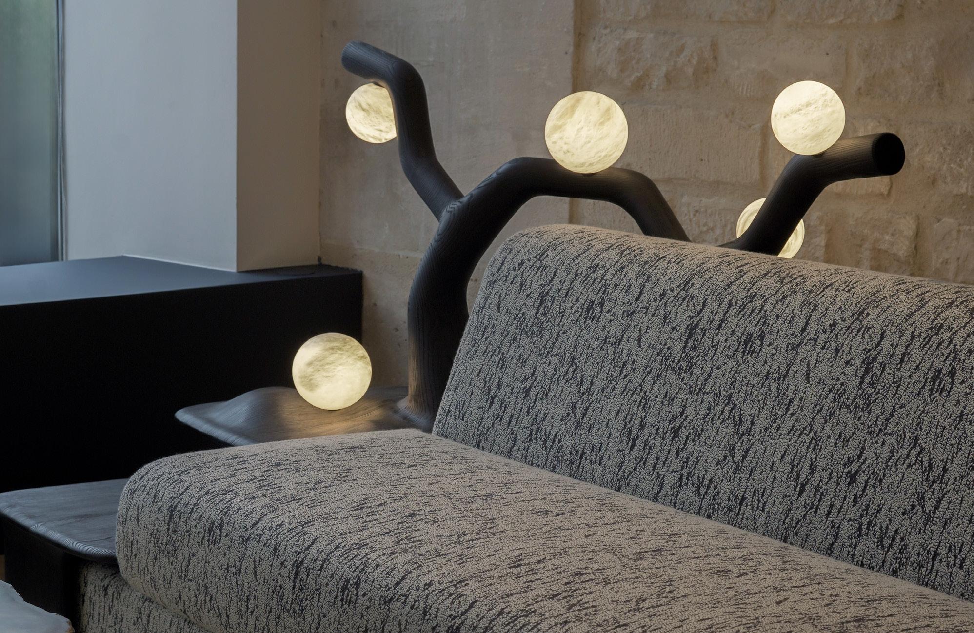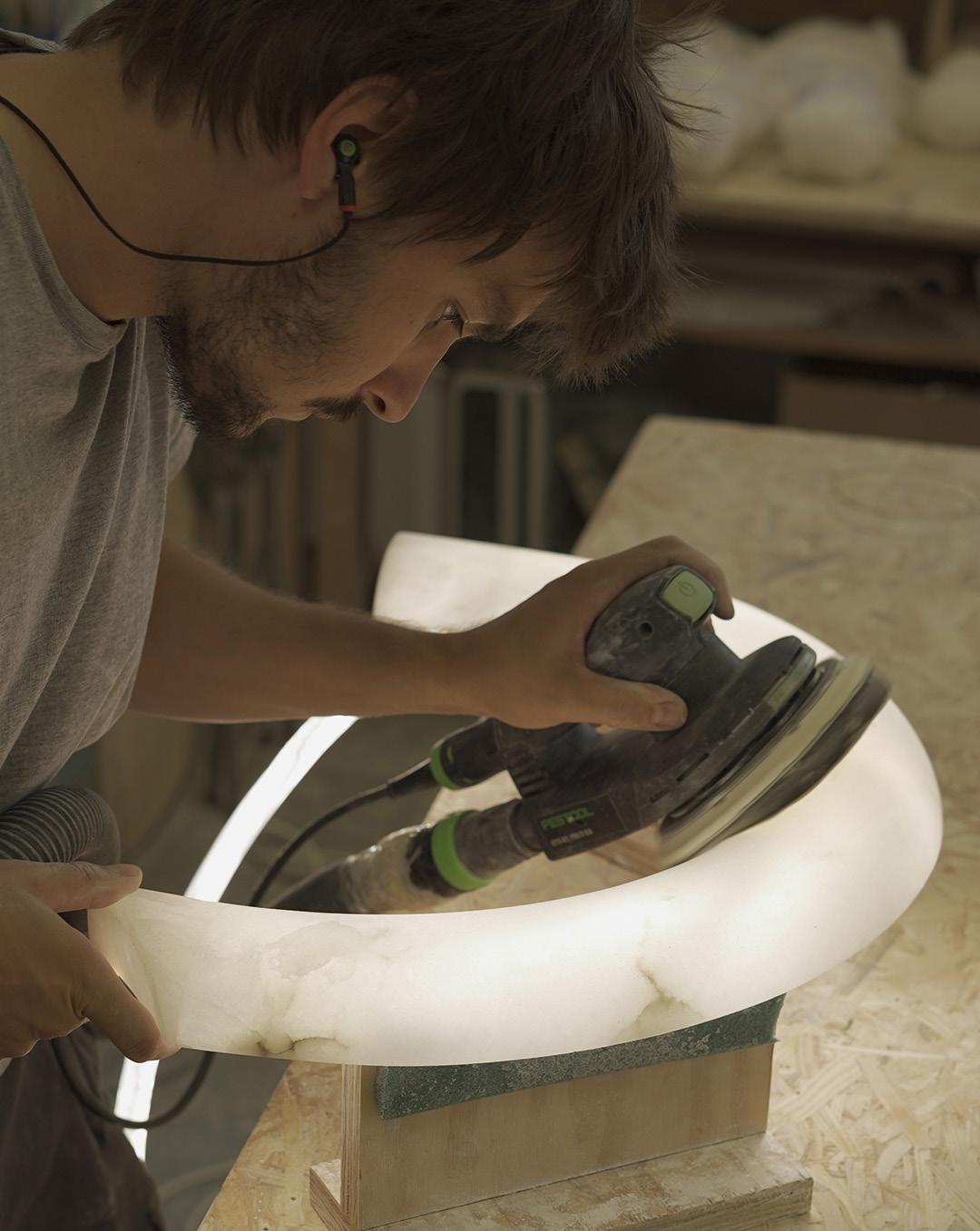 Each Extra.ordinary designs creation is born from the encounter of materials: alabaster with its inner light, wood with its organic strength, wool and silk with their precious softness.