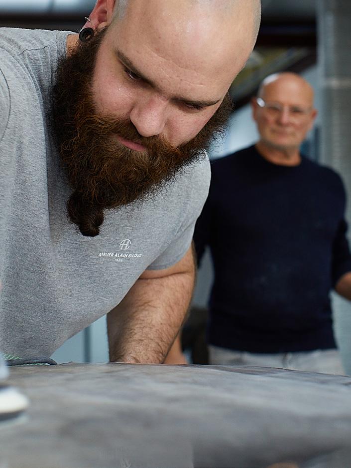 In the heart of Buc, near Versailles, the Alain Ellouz Paris workshop is a sanctuary of creation where craftsmanship meets innovation. Here, blocks of alabaster and quartz are transformed by the expert hands of artisans into exceptional lighting fixtures and monumental pieces. Each creation is born from a subtle dialogue between raw material and the designers’ vision, combining technical precision with artistic freedom. More than a workshop, Buc is a laboratory of excellence, a place where luminous icons are imagined, now radiating across the world.