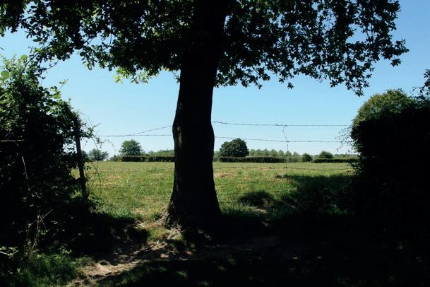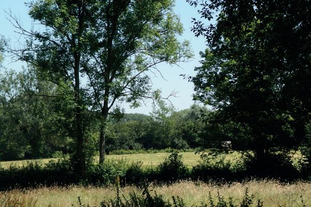La grande prairie contrairement aux prairies de la campagne environnante est piquetée d’arbres, vestiges de choix ornementaux de l’ancien camping.
