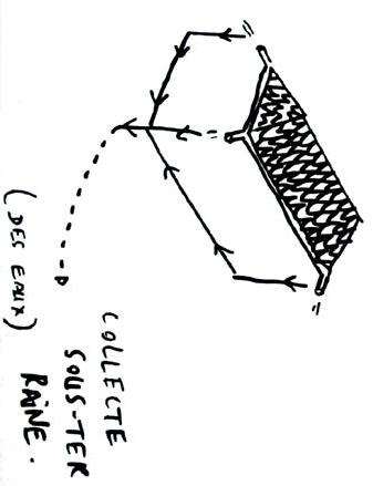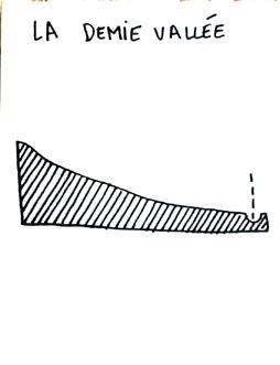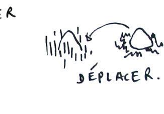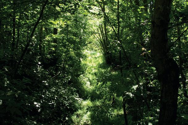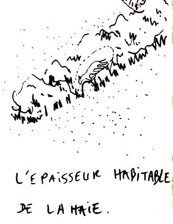 C’est une haie qui s’est épaissie avec le temps car personne ne s’est chargé rabattre. Les chevaux y ont dégagé un passage pour se fabriquer un abris. Ce passage ressemble à une cabane rudimentaire qui fait communiquer le pré des chevaux avec le pré-camping. La haie qui au départ avait un rôle de clôture est devenu un passage et un refuge, elle est passée de ligne à épaisseur.
