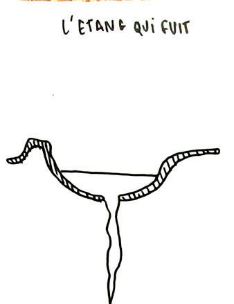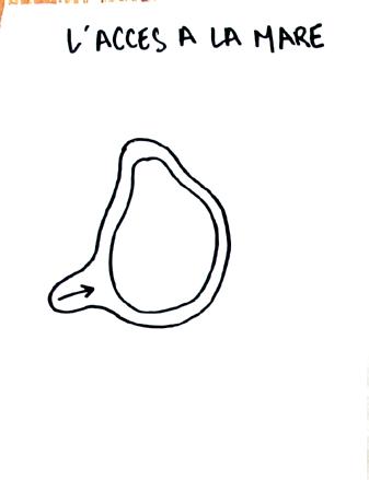 L’ étang a été créé durant l’époque du camping. La couche d’argile, présente naturellement dans le sol, qui devait retenir les eaux aurait été percée lors du creusement, altérant l’imperméabilité de l’étang. D’année en année le niveau de l’eau aurait baissé. En ce mois de juillet il n’y a plus d’eau. Sans l’eau, il reste la forme d’arène molle de ce trou qu’un chemin de ronde surplombe. La largeur constante du chemin vient du fait que la forme de l’étang suit parallèlement le tracé de la rivière.