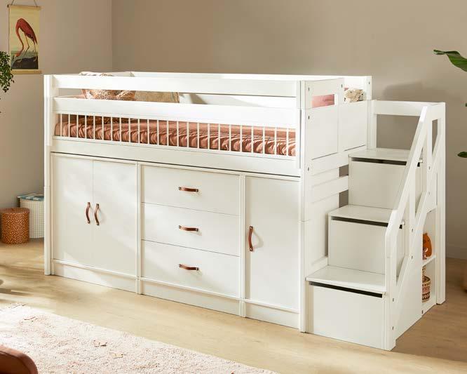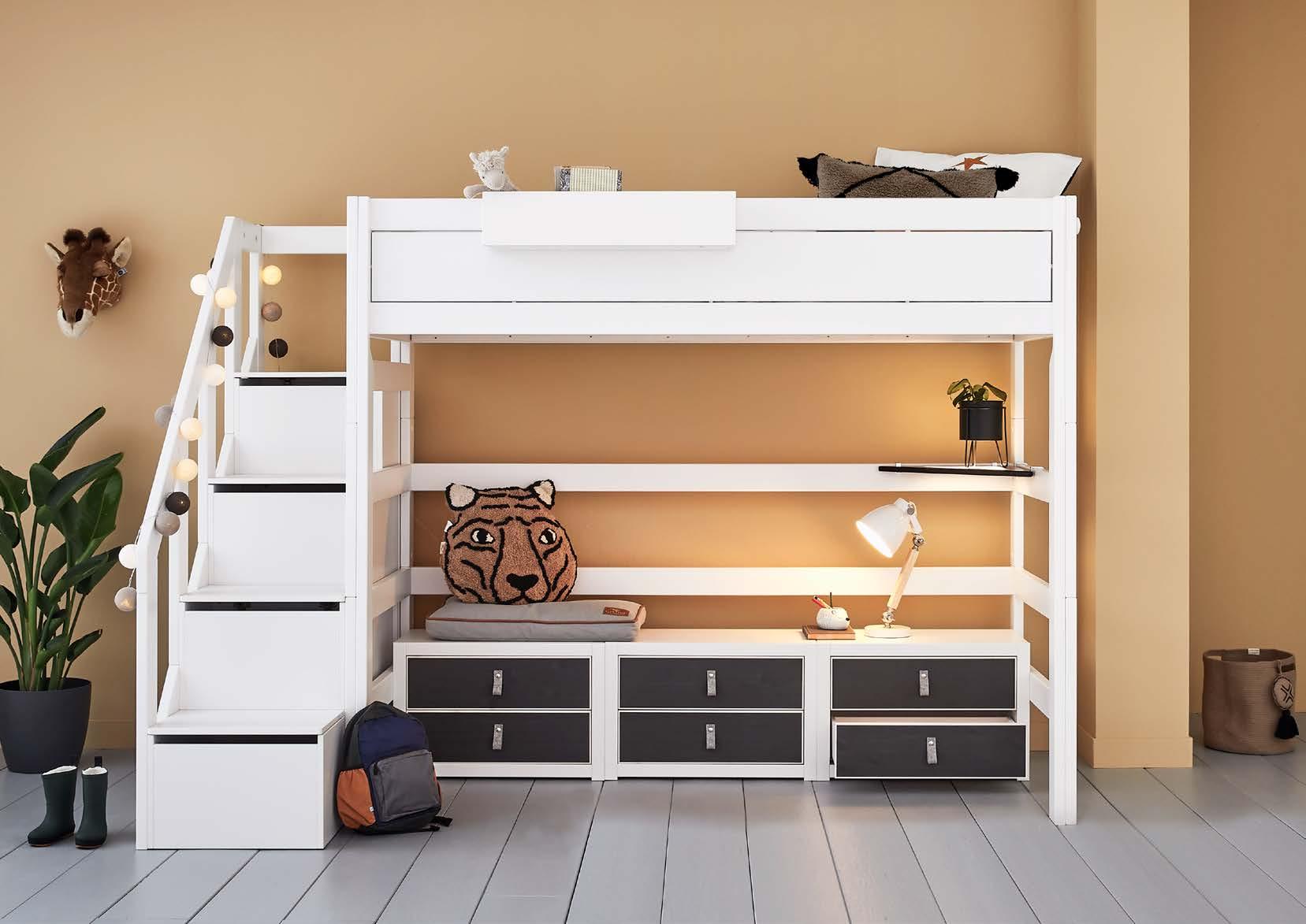 STŘEDNĚ VYSOKÁ POSTEL S ÚLOŽNÝMI SCHODY