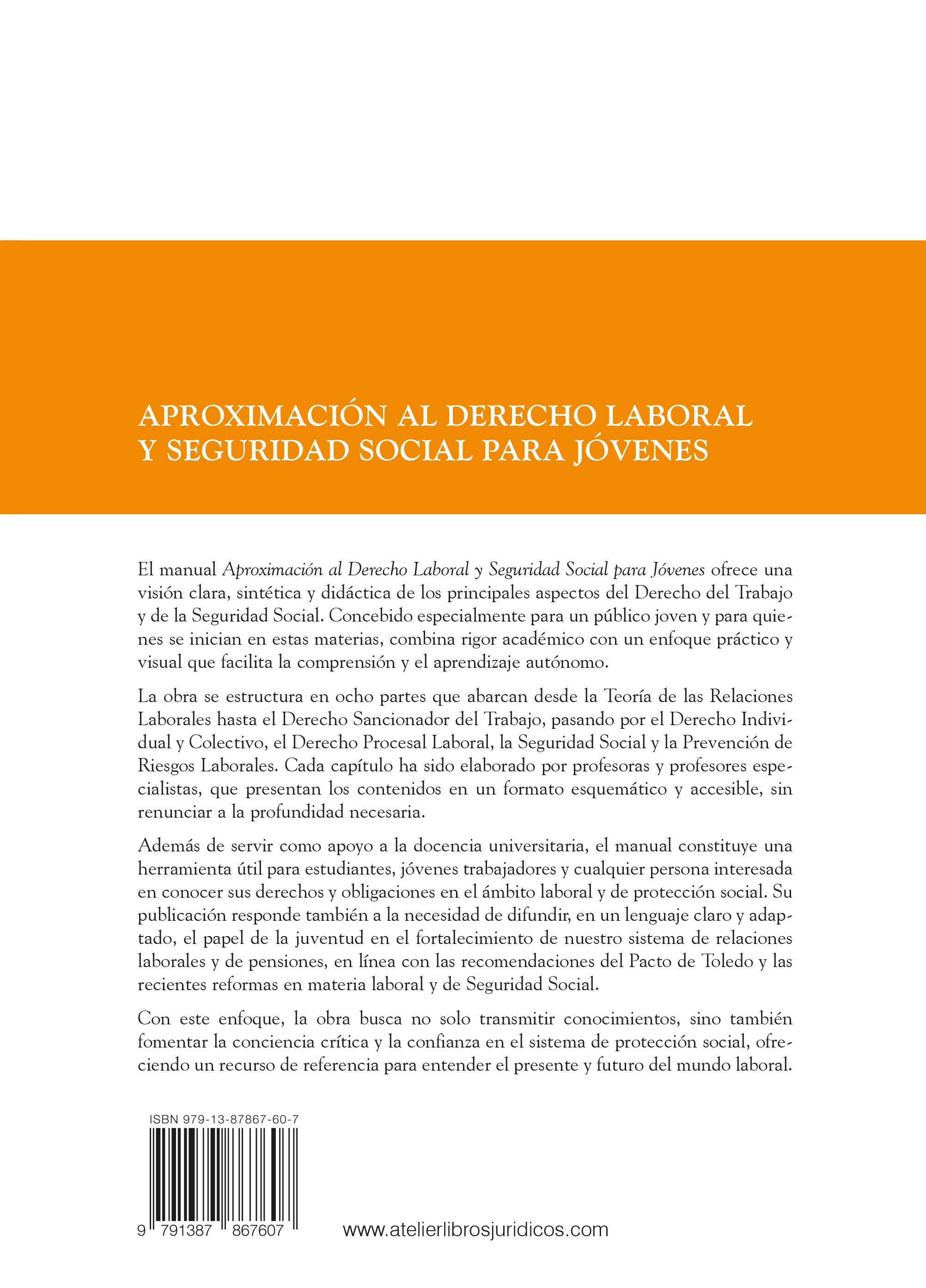 La estructura de este manual ha sido cuidadosamente diseñada para proporcionar una visión completa y actualizada de los conceptos fundamentales del Derecho del Trabajo y de la Seguridad Social. A través de ocho partes, el contenido aborda desde la Teoría de las Relaciones Laborales hasta el Derecho Sancionador del Trabajo, pasando por las áreas clave que cualquier estudiante o profesional del ámbito laboral necesita conocer, pero también cualquier joven que quiera tener un primer acercamiento al contenido aquí tratado.