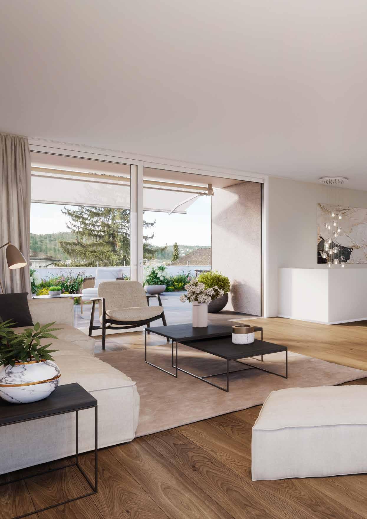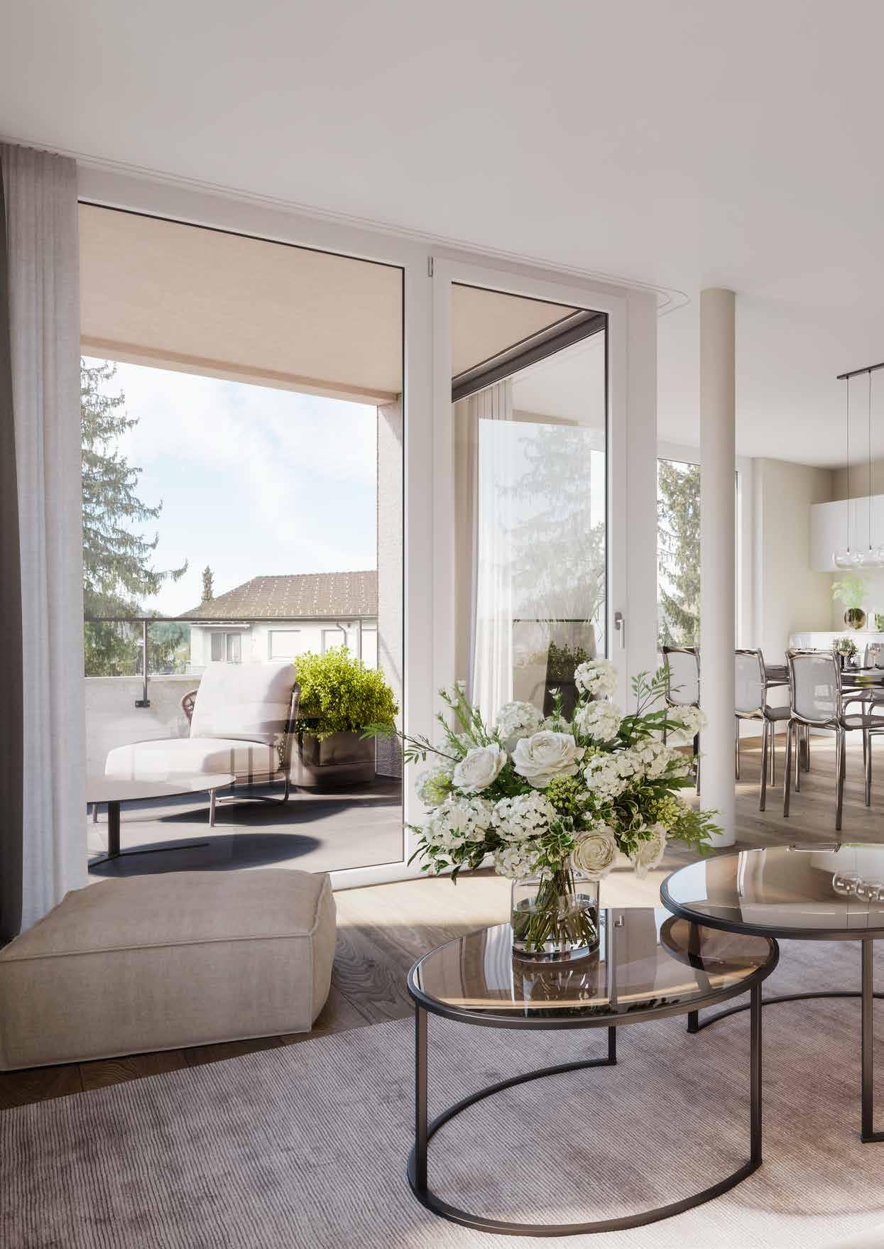 Der Verkaufsprospekt und die darin verwendeten Abbildungen visualisieren die Projektidee. Materialisierung, Detailausführungen und Farben sind stark vereinfacht dargestellt. Deshalb gilt der Verkaufsprospekt nicht als Vertragsbestandteil. Die verbindlichen Definitionen werden im Kaufvertrag und in einem separaten Baubeschrieb sowie in den Vertragsplänen festgehalten.