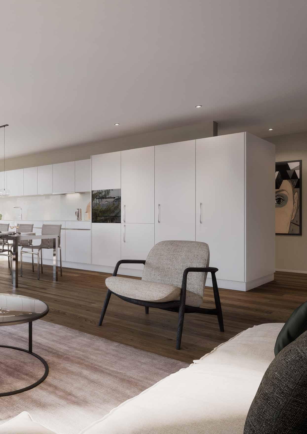 Dieser Neubau in einem ruhigen Quartier erfüllt alle Erwartungen und Ansprüche moderner Architektur. Hier entstehen acht Wohnungen mit allem Komfort in verschiedenen Grössen, jede von ihnen mit viel Raum und Licht, das durch eine konsequent offene Gestaltung erreicht wird. Die Verbindung von Küche, Wohnund Essbereich steht im Mittelpunkt jeder Wohnung und verspricht ein Höchstmass an Wohnkomfort und Funktionalität.