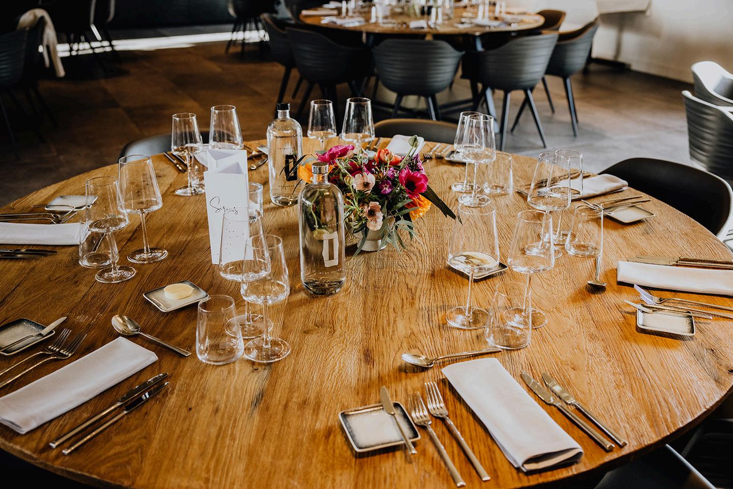 Een tafelbloemstuk is ideaal voor op ronde tafels! Iedereen heeft er een perfect zicht op en het vult de negatieve ruimte in het midden. Match made in heaven! Vanaf 110 euro