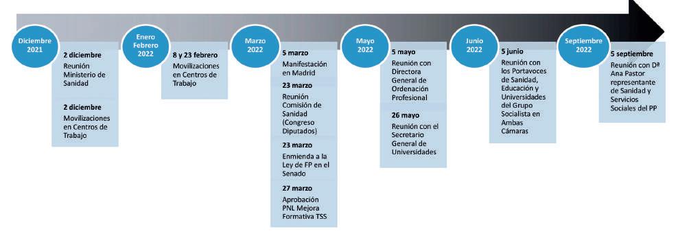 Estas movilizaciones se englobaron como refuerzo a acciones de la Comisión y como presión durante las reuniones con la Administración, como, por ejemplo, la llevada a cabo el 2 de diciembre con el subdirector general de Cohesión y Alta Inspección del SNS, Juan Julián García Gómez.