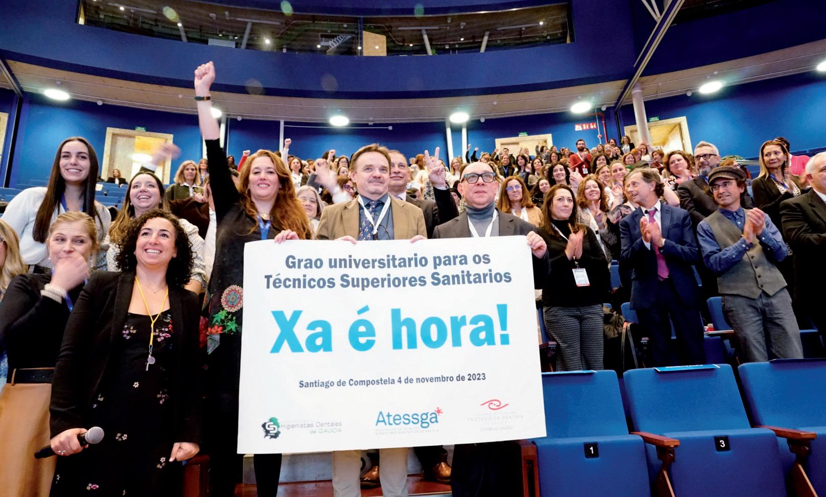 La Ciudad de la Cultura de Santiago acogió el I Congreso Gallego Multidisciplinar de técnicos sanitarios, organizado por la Asociación de Técnicos Superiores Sanitarios de Galicia, el Colegio Profesional de Higienistas Dentales y el Colegio O cial de Protésicos Dentales. Una iniciativa pionera en España ya que mostró el frente común de estos colectivos profesionales, que representan a once especialidades sanitarias en Galicia, en busca del reconocimiento de la titulación de grado universitario, de forma que puedan equiparar sus estudios a sus homónimos europeos.
