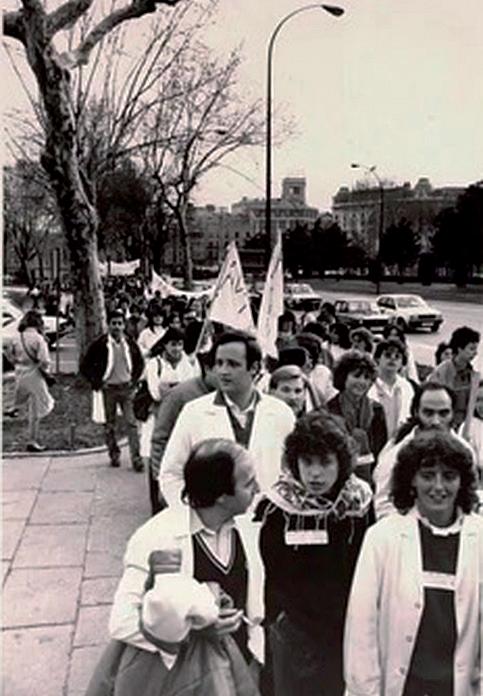 De aquellas promociones de Técnicos Especialistas, de esos cuatro hospitales, surgieron las primeras movilizaciones de nuestros Profesionales, que culminaron en Madrid en 1984, reuniéndose en el Paseo del Prado durante varios días, para reclamar la normalización de nuestras titulaciones de forma o cial, y poder ejercer nuestras funciones de manera regulada.