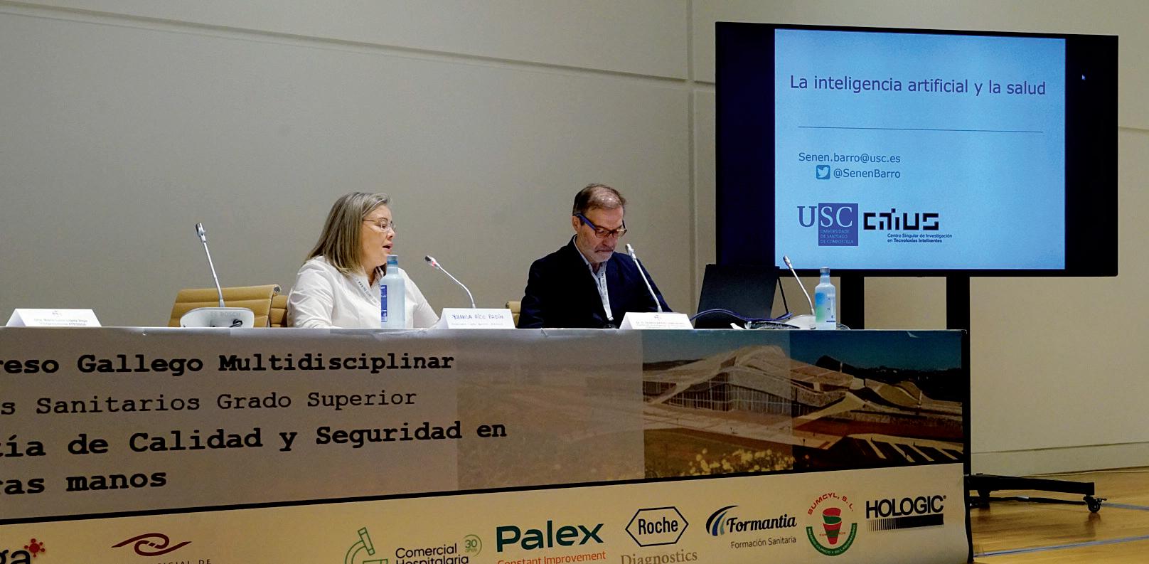 La conferencia inaugural del I Congreso Gallego Multidisciplinar de técnicos sanitarios corrió a cargo de Senén Barro Ameneiro, director del CITIUS-Centro Singular de Investigación en Tecnoloxías Intelixentes de la Universidad de Santiago de Compostela, que fue presentado por Yolanda Rico Rodríguez, redactora jefa de la revista ATESSGA. Senén Barro ofreció una ponencia titulada “La inteligencia arti cial y salud”.