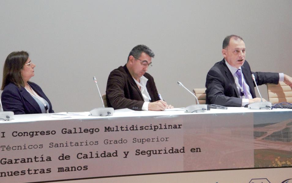El nuevo estatuto marco y clasi cación profesional de los técnicos superiores sanitarios y el futuro de las organizaciones colegiales centraron las dos mesas de cierre del I Congreso Gallego Multidisciplinar de técnicos sanitarios. Unas cuestiones que puedes consultar en profundidad en esta misma revista en los artículos rmados por los participantes en estas mesas de debate: Juan Felipe Rodríguez Ballesta, presidente