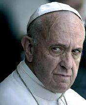 «Evedemmo (qualcosa di simile a come si vedono le persone in uno specchio quando vi passano davanti), in una luce immensa che è Dio, un vescovo vestito di bianco (abbiamo avuto il presentimento che fosse il Santo Padre), altri vescovi, sacerdoti, religiosi e religiose salire una montagna ripida, in cima alla quale c ’ era una grande Croce di tronchi grezzi, come se fosse di sughero con la corteccia; il Santo Padre, prima di arrivarvi, attraversò una grande città mezza in rovina e mezzo tremulo, con passo vacillante, afflitto di dolore e di pena, pregava per le anime dei cadaveri che incontrava nel suo cammino; giunto alla cima del monte, prostrato in ginocchio ai piedi della grande Croce» (dal terzo Segreto di Fatima)
