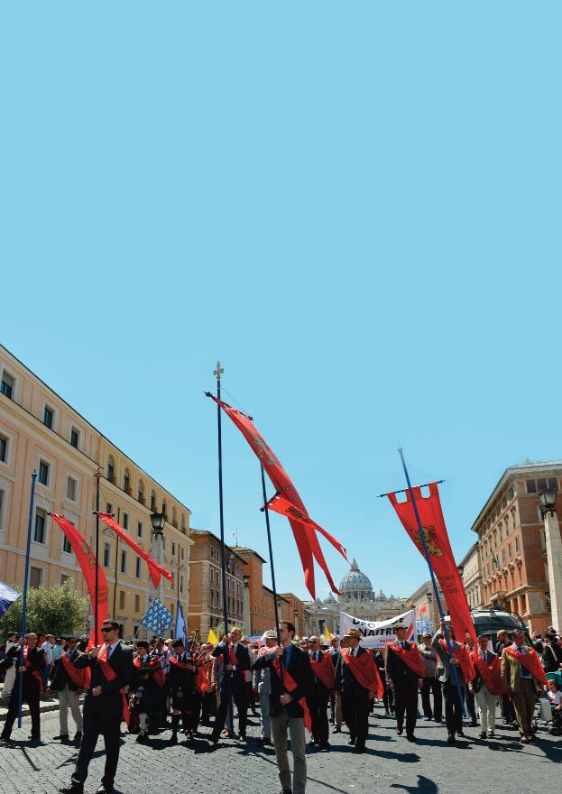 Ho detto che la nostra cappa è un simbolo. Di cosa? Perché questo simbolo parla di crociata? Questo è innegabile Non c’è persona al mondo che, di fronte alla cappa, non abbia pensato a una crociata. Dalla Bolivia alla Spagna alla Francia, la cappa suscita istintivamente l’idea di crociata Ciò è curioso, poiché la cappa non porta una croce, bensì un leone È vero che il leone ha sul petto una croce minuscola, ma questa non attira l’attenzione, tanto è piccola. Perché, dunque, suscita l’idea di crociata? Per quale motivo la cappa suscita la memoria di un evento storico, o meglio di una sequenza di eventi storici, ai quali, tuttavia, non fa esplicito riferimento?