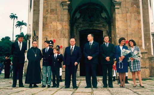 Alcuni membri della Famiglia imperiale all’uscita di una Santa Messa a Rio de Janeiro Al centro, S A I R Dom Luiz d’Orléans e Bragança, capo della Casa Imperiale Alla sua sinistra, i principi Dom Bertrand e Dom Antonio Nel tondo: la corona imperiale del Brasile