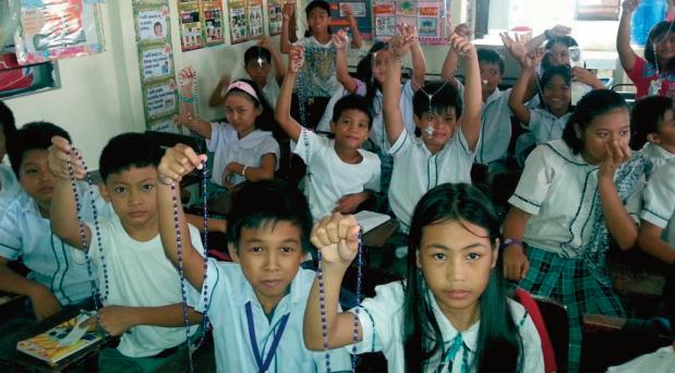 n una campagna patrocinata dalla TFP Americana, volontari locali della TFP hanno distribuito migliaia di Rosari nelle scuole di Manila, nelle Filippine.