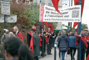Immediata la discesa in campo della TFP francese con la campagna “Restaurons Notre Dame à l’identique!” Ricordando la frase di Victor Hugo “Vi sono mode che fanno molto più male di una rivoluzione”, la TFP francese affermava: “L’unica soluzione degna di questo gioiello della Civiltà cristiana è la restaurazione identica a prima”. Ha quindi avviato una sottoscrizione, che ha raccolto più di centomila firme Vistose campagne pubbliche di strada hanno poi portato l’iniziativa in tutto il Paese (foto a sin )