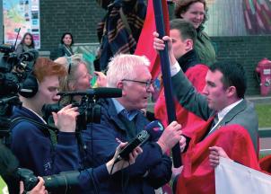 Il Rapporto anti-TFP nasce da una perplessità. Le lobby LGBTQ non riescono a spiegarsi come mai un movimento tradizionalista riesca a raggiungere un tale successo Sopra, campagna della TFP italiana nel Centro Storico di Brescia