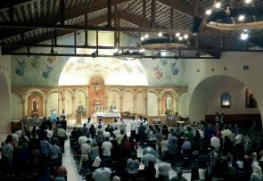 Nel primo pomeriggio Dom Mathias Tolentino Braga, abate del Monastero di San Benedetto ha celebrato una Santa Messa solenne nella chiesa del Sacro Cuore di Gesù, che Plinio Corrêa de Oliveira soleva frequentare da piccolo con la famiglia.