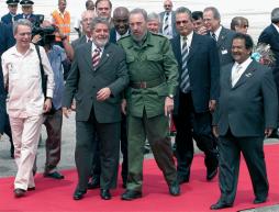 Il presidente Lula visita la Cuba di Fidel Castro nel 2003. Alla sua destra, il teologo della liberazione Frei Betto, principale mentore del PT