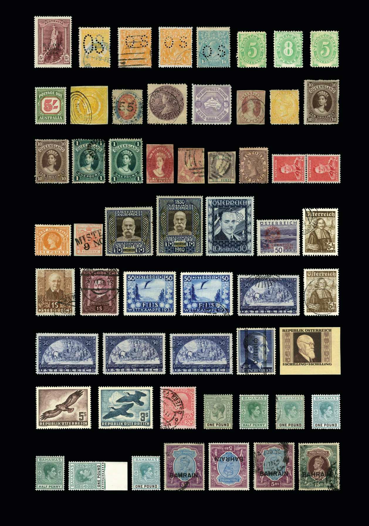 26881 1904-45 A large, fine used, balance collection on 35 old album leaves with several complete sets. Includes 1918 airs, Charity issues, definitives, newspaper stamps & postage dues. Quality above average throughout. A really sound base for development (few 100’s) {U} £200 26882 200-206 1908-13 50h to 10kr very fine used (7) Cat. £140 {U} PH Plate 53 £50 26883 223-236 1910 80th Birthday set to 1kr very fine used (14) Cat. £275 {U} £100 26884 247-265 1916-19 Set of 19 to 10k deep violet, very fine used Cat. £60 {U} £25 26885 1918-81 Collection/ Stock in a hagner display book. Light duplication in places with strength in middle period. With good 1950’s u.m., mint and f.u. sets and singles. Note some Hitler overprints, with better, Costumes including key 1s red u.m. (cat £160), dues, Military post, some cinderella, modern sheetlets and others. Priced to sell at £1190 and cat value app Cat. £3000 HEAVY/OVERSIZE LOT - OVERSEAS SHIPPING SURCHARGE APPLIES {MX} £450 26886 519-525 1922 Musicians Fund set of 7 very fine used Cat. £70 {U} £25 26887 546-553 1922-24 Air set of 8 very fine used Cat. £60 {U} £25 26888 554-562 1923 Artists Charity Fund set very fine used (9) Cat. £130 {U} £50 26889 1923-93 Mint collection in two Davo albums and a stockbook. Volume one is sparse, but with pages from 1850 and some better 1920’s sets. Volume two is mainly mint, 1945 to 1978, leaves to 1987. With a good degree of completion and mainly u.m. from 1958 to 78. Third volume is a large stockbook with a large collection from 1940’s to 1980’s, some duplication, but much is u.m., particulary from late 1950’s onwards. Total cat value £2300+ Cat. £2300 HEAVY/OVERSIZE LOT - OVERSEAS SHIPPING SURCHARGE APPLIES {UM} £300 26890 563-7 1924 Artists Charity Fund set very fine used (5) Cat. £100 {U} £35 26891 616-635 1925-30 Air set of 20 very fine used Cat. £300 {U} PH Plate 53 £130 26892 642-5 1928 10th Anniversary of the Republic, set of 4, v.fine used Cat. £70 {U} £25 26893 660-665 1930 Anti-T.B. Fund set of 6 very fine used Cat. £200 {U} PH Plate 53 £70 26894 672-677 1931 Austrian Writers set of 6 very fine used Cat. £325 {U} PH Plate 53 £120 26895 706-711 1933 250th Anniversary of the Relief of Vienna, scarce set of 6 very fine used Cat. £450 {U} PH Plate 53 £160 26896 778-781 1935 Winter Relief set of 4 very fine used Cat. £100 {U} £35 26897 782-7 1935 Austrian Heroes set of 6 very fine used Cat. £250 {U} PH Plate 53 £90 26898 788-791 1936 Ski Championship set of 4 very fine used Cat. £190 {U} PH Plate 53 £70 26899 798-803 1936 Welfare Fund(Inventors) set of 6 very fine used Cat. £70 {U} £25 26900 830/1334 1945-58 A substantial fine used collection on over 30 old leaves, from 1945 opts on Hitler issues through to 1950’s commems. A fair percentage of complete sets and a good number of postage dues at the back. Quality stamp designs are a feature of Austrian issues. A fine base for expansion (few 100’s) {U} £150 26901 1145-1151 1948 Creative Artists set of 7 very fine used Cat. £70 {U} £25 26902 1162-5 1949 Child Welfare set of 4 very fine used Cat. £110 {U} £40 26903 1170-73 1949 P.O.W. Relief Fund set of 4, very fine used Cat. £70 {U} £25 26904 1212-1214 1950 Carinthian Plebiscite set of 3, very fine used Cat. £150 {U} PH Plate 53 £60 26905 1215-1221 1950-53 Air set of 7 very fine used, rare so fine. Cat. £400 {U} PH Plate 53 £150 26906 1225-8 1951 Reconstruction Fund set of 4 v.fine used Cat. £90 {U} £35