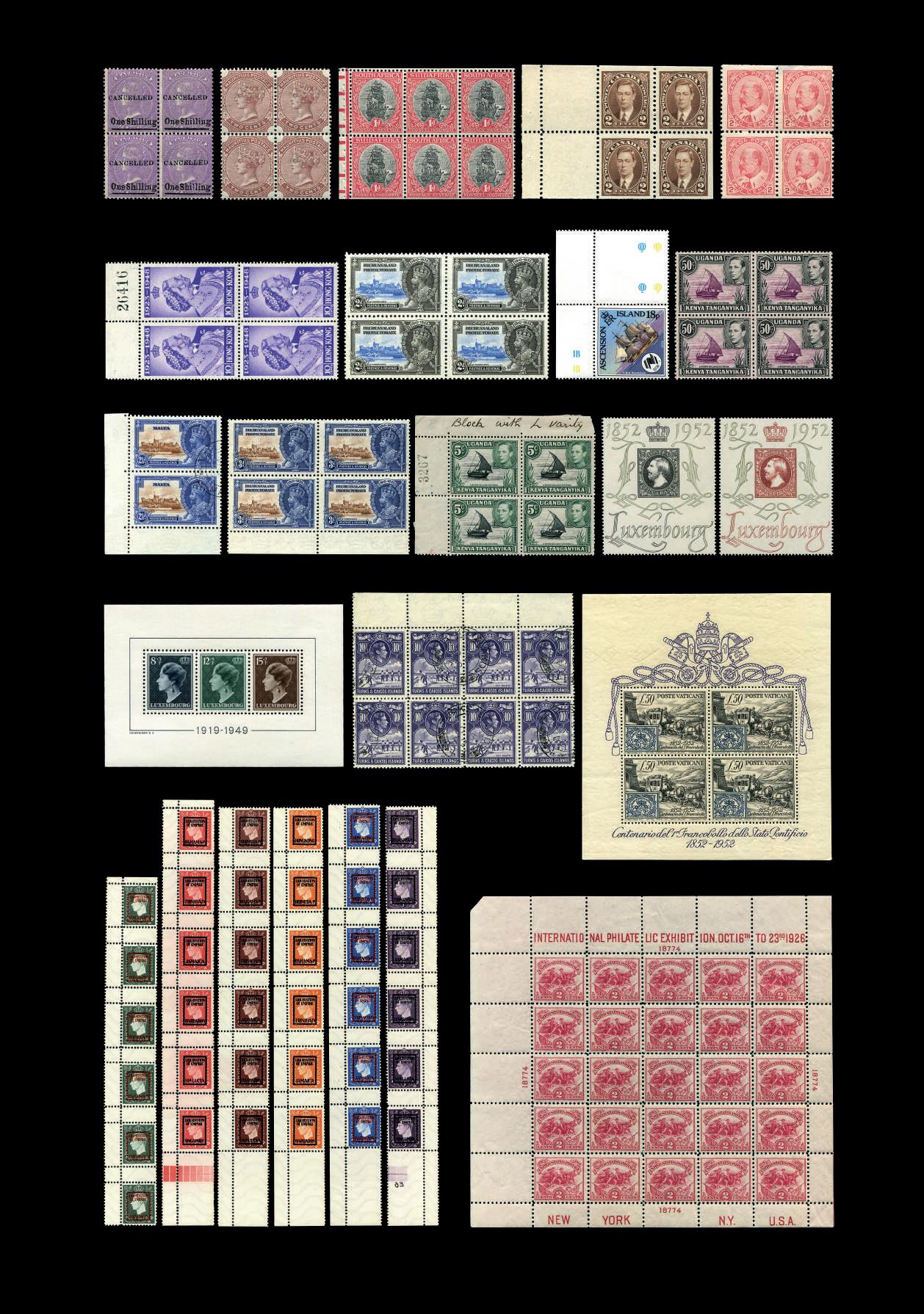 26858 16-27 1939 GVI set cds fine used. (13). Cat. £50 {U} £30 26859 17/22 1939 GVI group of u.m blocks of 4 each with ¾a left marginal 1a lower marginal part imprint, 2a bottom right corner, 2½a top left corner & 3a top marginal x 2 block. (6 blocks). Cat. £60 {UM} £36