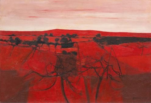 ‡ BERT ISSAC water soluble mediaentitled verso, ‘The Red Hill’, signed and dated 1997, 19 x 19cms