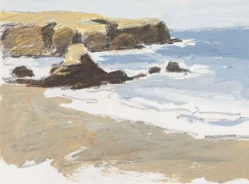 ‡ SARAH THWAITES acrylic on boardentitled verso, ‘Traeth Coch, Anglesey’ on Oriel Tegfryn Gallery label, signed, dated verso 2015, 18 x 66cms
