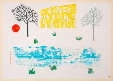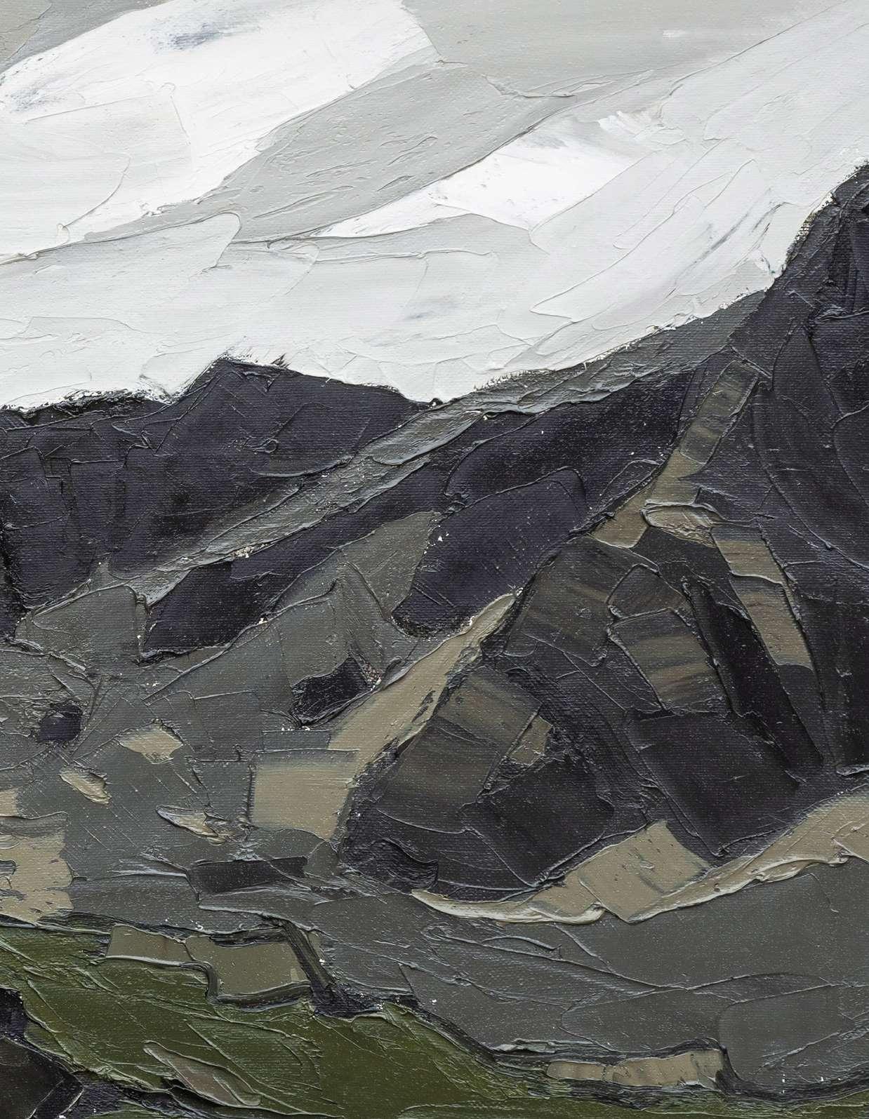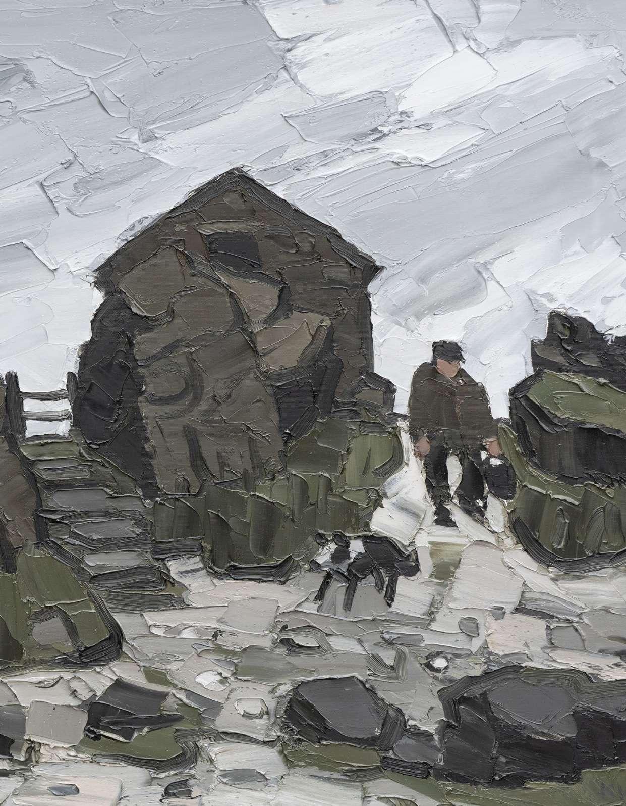 Auctioneer’s Note: “The three men on a winter hill” combines text from John Berryman’s poem “Winter Landscape” and Psalm 147, Verse 16. Berryman’s poem depicts “the three men coming down the winter hill”, while Psalm 147:16 speaks of God spreading “snow like a blanket” and scattering “frost like dust”, a description of the winter scene.
