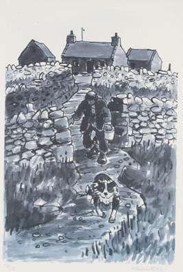 ‡ OGWYN DAVIES ink and watercolourentitled, ‘Colton Grass’, signed, 18 x 18cms