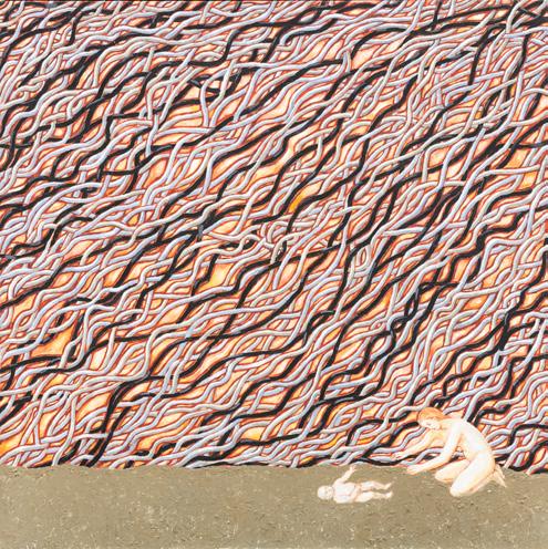 ‡ KEITH BAYLISS oil on paper - entitled verso ‘Touch’, signed with initials, 49 x 65cms