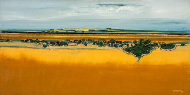 ‡ WYN HUGHES oil on board - entitled verso ‘Cae Bach Aur / Little Golden Field’, signed, dated verso 2009, 23 x 16cms
