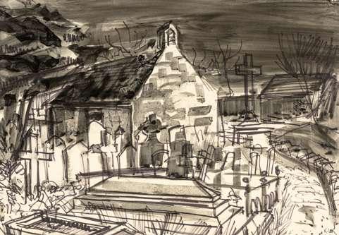 PETER PRENDERGAST pencil on paperentitled verso, ‘Hexham Abbey’, signed and dated ‘99, 55 x 39cms