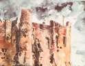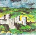 ‡ JOHN PIPER Gregynog Press lithographs - a selection of eight coloured lithographs from ‘Deaths and Entrances’ by Dylan Thomas, including Laugharne Castle, loose pages, seven are 35 x 47cms with one being smaller at 35 x 24cms