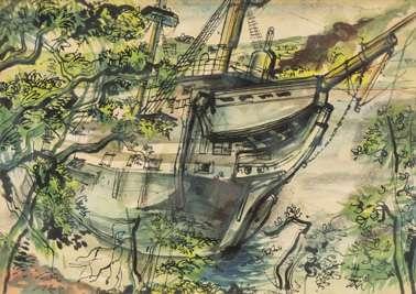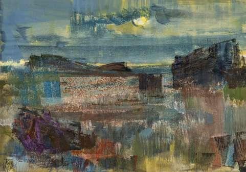 ‡ RAY HOWARD-JONES gouacheentitled verso, ‘Shearwater’ on West Wales Art Centre label, signed and dated 1953, 37 x 52cms