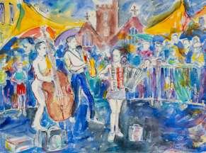 ‡ ROBERT MACDONALD watercolour - entitled verso, ‘Jazz in the Bulwark, Brecon’, signed and dated 2000, 57 x 76cms