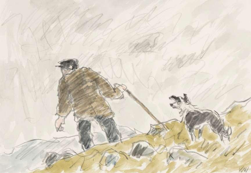 print - entitled, ‘The Three Men on a Winter Hill’, 46 x 41cms