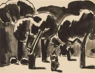 Auctioneer’s note: In 1981-82 Jonah Jones served a year’s fellowship at Gregynog Hall, the University of Wales’s residential study centre near Newtown, Powys. He aimed to spend the time developing his watercolour painting, a medium he had used intermittently for many years.