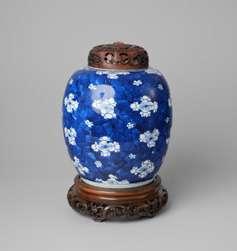 A CHINESE BLUE-GLAZED ‘BASKET-WEAVE’ GLOBULAR VASE 20TH CENTURY 18.5cm.