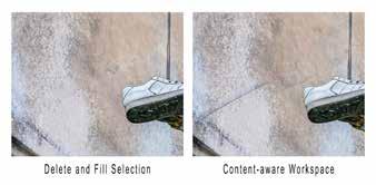 This new function will do a good job of removing the selected object and filling the area. Often when using other tools to remove objects you will get noticeable fringes or edges around the object. The new Delete and Fill Selection functionality does a much better job, I suspect what it is doing is intelligently expanding the selection before doing a content-aware fill. Refer to Figure 4 to see a comparison of the Delete and Fill Selection with the Content-aware Workspace – the new method has done a much better job with none of the visible edges created by the Content-aware Workspace tool.