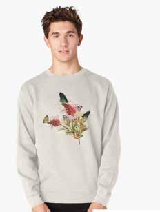 Margaret Kalms Bunch Of Butterflies On Grevillea Sweatshirt Butterflies False Colour Grey Stripes 50% of profit donated to endometriosis