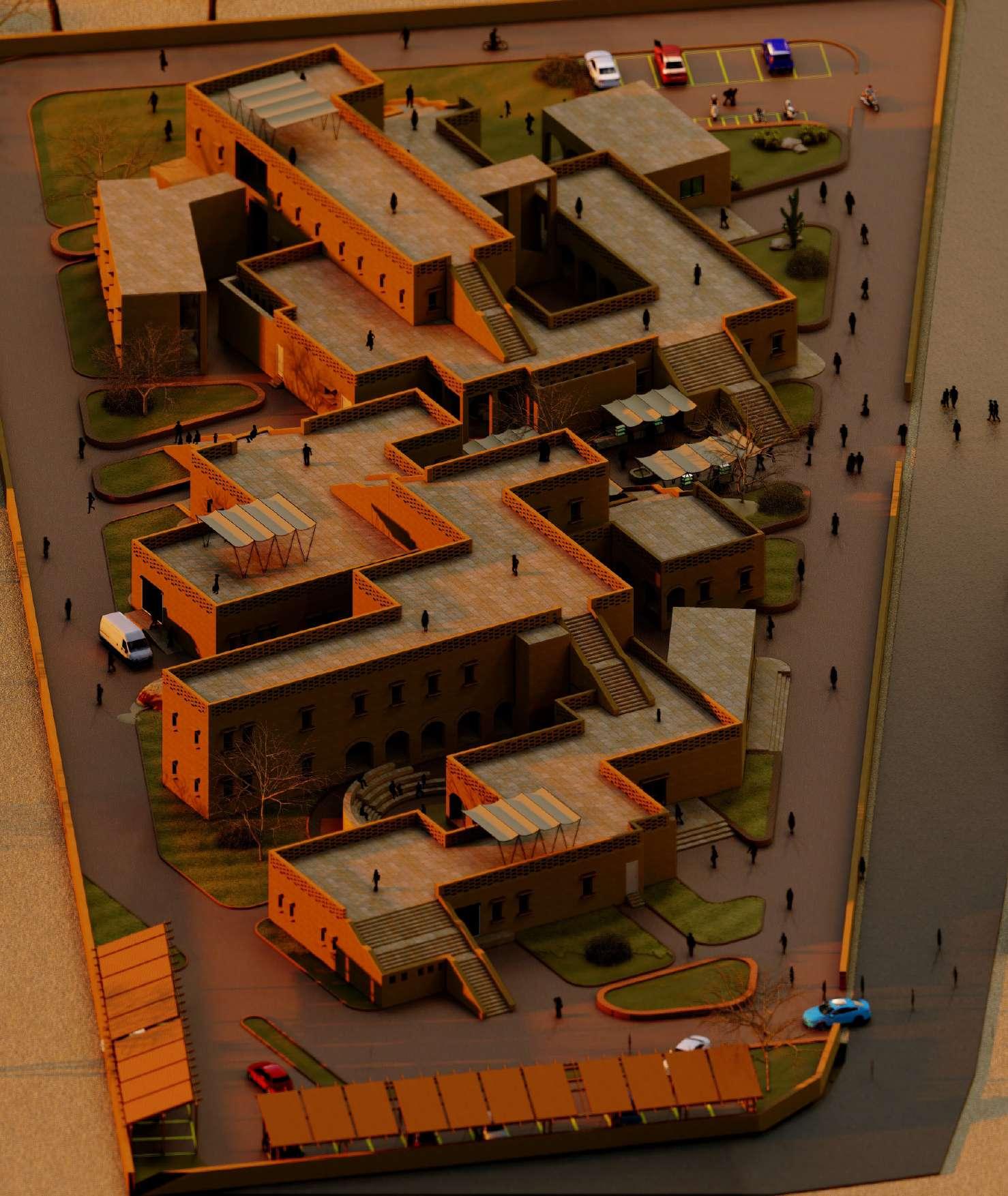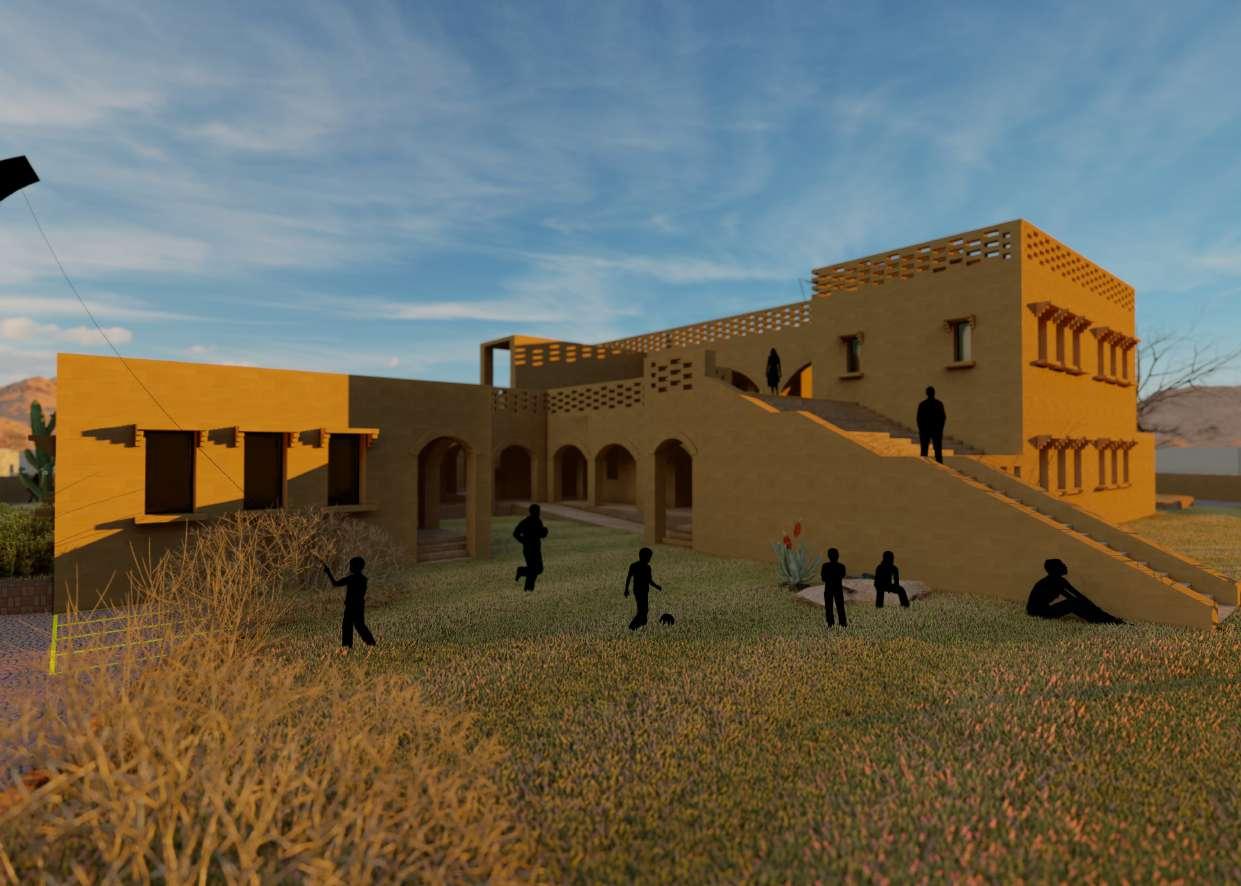 The idea is developed by expressing Jaisalmer’s traditional heritage in a contemporary manner. The vibrant artwork and layouts of the Havelies influence the aesthetics and organization of the spaces. The overall shape and circulation of the space are inspired by the flowing curves and patterns of the Thar desert sand dunes, providing open spaces that facilitate unobstructed mobility and interaction amongst the women who work and study there.