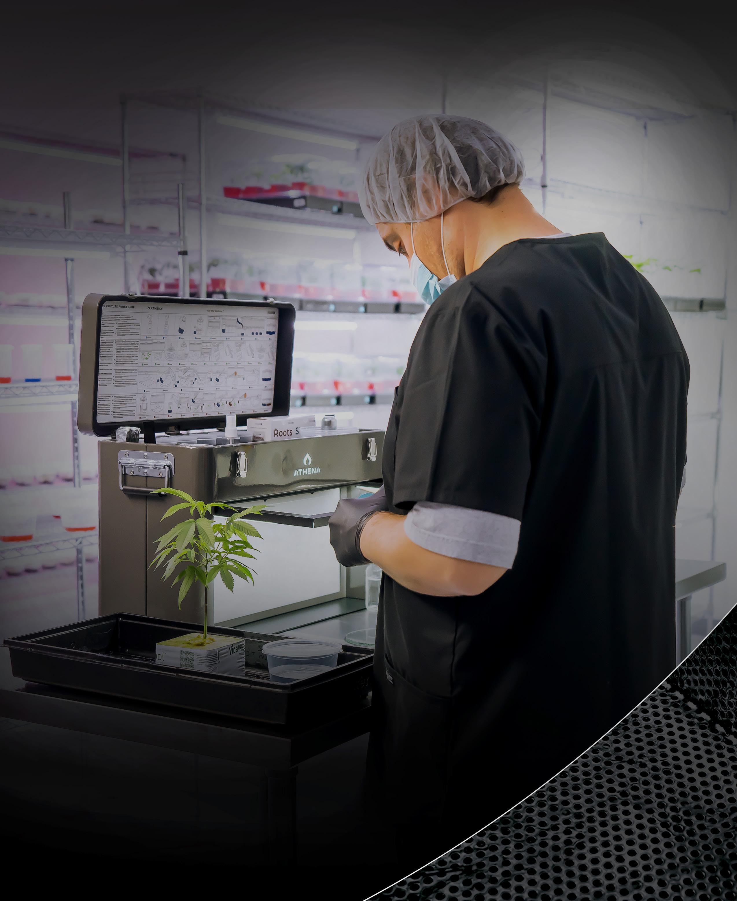 El equipo de I&D de Athena ® toma medidas de doce puntos de datos y monitorea el desarrollo de los cogollos.