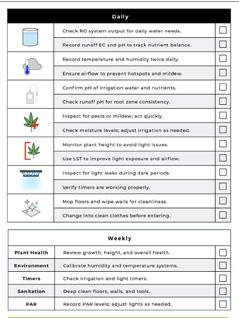 Grower Checklist, Phase Considerations, Maintenance