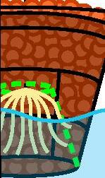 Raised portion of the net pot designed to seat the basal stem of a rooted clone or rockwool cube.